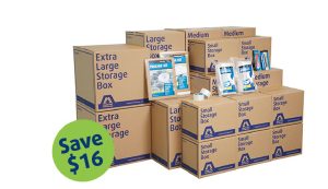 If you are planning a large move, this 23 box pack is perfect. It includes 8 small, 10 medium, 3 large and 2 extra large cardboard boxes, as well as a glassware and dishware protective kit, 2 rolls of tape, a utility knife, a marker pen and 2 bags of small bubble wrap.